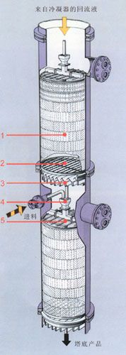 圖2:1、規(guī)整填料 2、支撐柵板 3、液體收集器 4、降液管 5、管式液體分布器